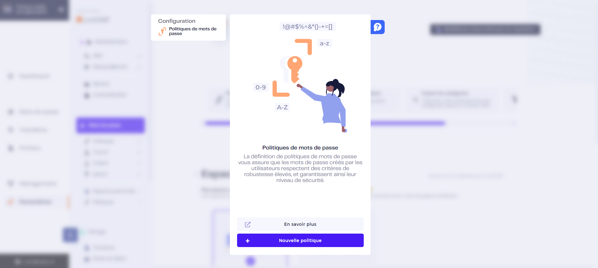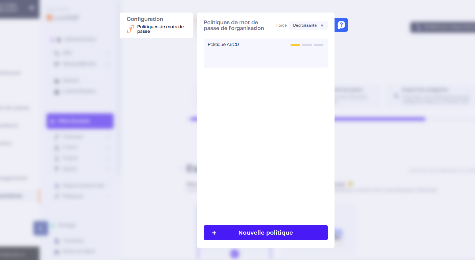 - Etape 2 : Cliquez ensuite sur « Nouvelle Politique » pour créer une nouvelle politique de mots de passe
