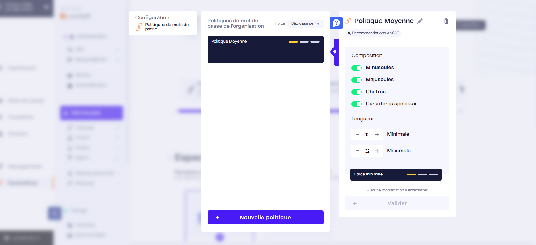 - Etape 4 : Une fois vos changements effectués, cliquez sur « Valider » afin de mettre à jour votre politique de mots de passe