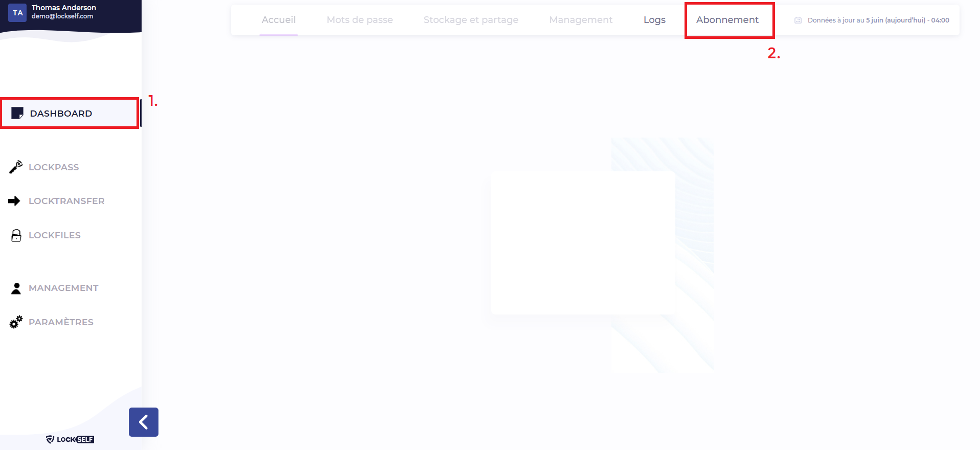- Depuis le compte Administrateur de votre espace, allez dans l'onglet Dashboard, et cliquez sur « Abonnement »